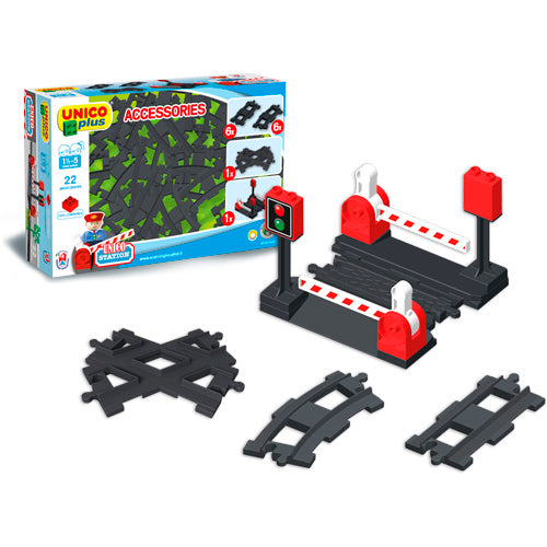 Unico plus treinbaan met wissel en spoorwegovergang 22-delig