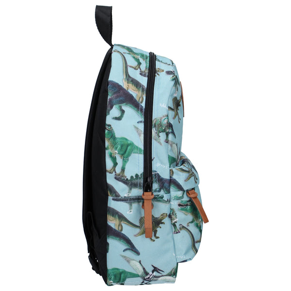 Op deze super stoere Skooter rugzak met dino-print zien we de meest agressieve T-rex, maar ook de meer vriendelijke Brachiosaurus en nog vele andere soorten dino's terug. De hippe kinderrugzak heeft een ruim hoofdvak en een afsluitbaar voorvakje. Het rugpand is verstevigd en de schouderbanden zijn gewatteerd en in lengte verstelbaar, hierdoor draagt de rugzak altijd comfortabel.