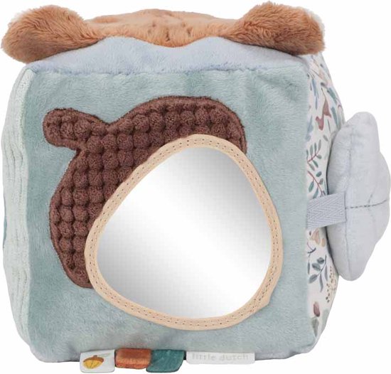 Ga op avontuur in het betoverend bos van Forest Friends waar de bosvriendjes samen wonen en spelen. Deze superzachte activiteitenkubus in vrolijke tinten zal de nieuwsgierigheid van jouw kleintje zeker wekken. Elke zijde is voorzien van een andere activiteit met verschillende texturen en vormen die helpen bij het ontwikkelen van de zintuigen en natuurlijk voor eindeloos veel vermaak zorgen. De kubus kan vastgepakt en gedraaid worden en beschikt over een spiegeltje voor zelfontdekking.