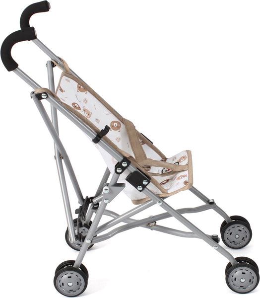 De Mini-buggy Roma Beige met beertjes is een compacte poppenwagen ontworpen voor kinderen vanaf 3 jaar. Deze buggy is voorzien van een schattig beertjesmotief en is eenvoudig opvouwbaar, waardoor hij weinig ruimte inneemt. Kenmerken zijn onder andere veiligheidsgordels, dubbele wielen aan zowel de voor- als achterkant, en zachte, comfortabele handgrepen. Geschikt voor poppen tot 52 cm, met een duwhoogte van ongeveer 57 cm.