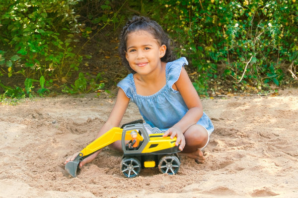 LENA® TRUXX² graafmachine met rubberen banden, 4 mm gegalvaniseerde stalen assen, bestuurderscabine bijvoorbeeld, beweegbare graafarm, vergrendelbaar chassis, trekhaak en LENA® speelfiguur. Geschikt voor gebruik binnen en buiten. Lengte: 35cm. Geschikt voor kinderen vanaf 2 jaar. Leeftijd vanaf: 2+