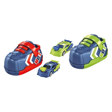 Plaats de rallyauto in de schoen, zet hem op het afschietmechanisme en druk op de knop om hem af te schieten! Na de race gebruik je de schoen om je auto veilig op te bergen, zodat je altijd klaar bent voor de volgende actie.