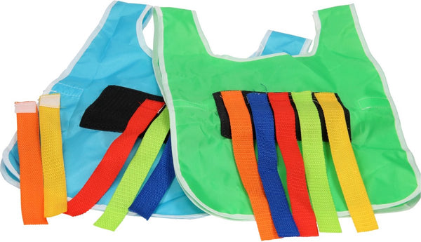 Ren achter elkaar aan en probeer elkaars lintjes af te pakken. Degene die het eerst alle linten van de ander heeft gepakt, wint het spel! De set wordt geleverd met twee hesjes met beide vijf lintjes. Met het klittenbandvlak bevestig je de linten aan het vest, zodat je ze er makkelijk vanaf kan trekken. Met meerdere sets kun je verschillende teams maken!