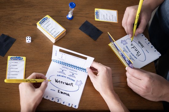 Iedere speler krijgt een eigen boekje met een gekleurde ringband en een stift, op de eerste pagina wordt aan het begin van het spel jouw eigen naam opgeschreven in dit boekje.