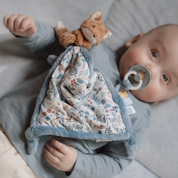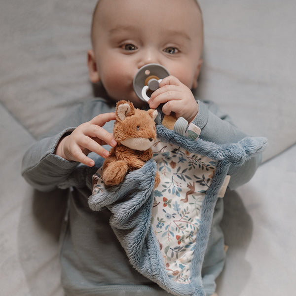 Knuffel maar fijn! Zorg ervoor dat dit heerlijk zachte knuffeldoekje altijd binnen handbereik is, voor geruststellende knuffels op elk gewenst moment, waar je ook bent. Versierd met het Forest Friends dessin, biedt het vele leuke details voor baby’s om te ontdekken. Diverse labels die de zintuigen prikkelen, makkelijk vast te pakken knopen, en een lus om een speen of bijtring aan te bevestigen. Het zachte vosje maakt het doekje extra knuffelig.
