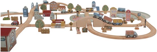 Bouw je eigen wereld met de Little Dutch houten treinbaan XL! Deze uitgebreide set bevat een locomotief, wagons, rails, bruggen, gebouwen, auto’s en figuren. Er zijn ook bomen en verkeersborden. De mogelijkheden zijn eindeloos! Rij de trein over de brug, stop bij het station en ontdek de stad. Combineer de treinbaan XL met uitbreidingsets om het speelplezier nog groter te maken. Stap jij in? 113-delig.