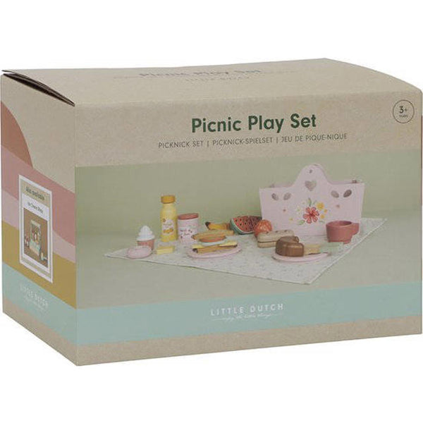 Spreid je picknickkleed maar uit en laten we buiten picknicken! Alles wat je nodig hebt voor een gezellige picknick buiten zit in deze schattige roze picknickmand. Neem een boterham en beleg het met kaas, tomaat en sla. Veel plezier met het delen van heerlijk fruit met je vrienden en proosten met een glaasje sinaasappelsap. Het enige wat je nodig hebt is een leuke plek en de picknick kan beginnen. Deze 31-delige houten picknick speelset zal de verbeelding van je kleintje prikkelen om elk moment om te toveren tot een heerlijke picknick. De houten picknickmand zit boordevol heerlijk eten, inclusief 2 sets bekers, borden en bestek, en natuurlijk een kleed, waardoor het de perfecte setting biedt voor rollenspel. Het fruit in deze set kan door midden worden gesneden met het houten mes en weer aan elkaar worden bevestigd dankzij klittenband. Ook zijn er boterhammen, een croissant en een stokbrood om te beleggen met de plakjes kaas, tomaat en sla voor een echte picknickervaring. De deksel van de jampot en de dop van de sinaasappelsapfles kunnen worden geopend en gesloten, en er is zelfs een traktatie voor kleine zoetekauwen. Kijk hoe je kleintje het plezier van picknicken beleeft, heerlijke maaltijden creëert en creativiteit ontwikkelt door rollenspel met deze houten picknick speelset.