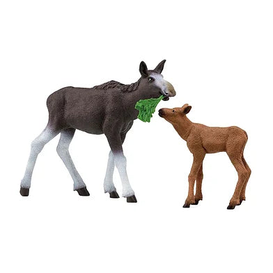 De elandkoe heeft een lange snuit waarmee ze het sappige gras van veraf kan ruiken. Het plukje bij haar poten smaakt zo lekker dat ze er nog wel meer van wil vinden. Maar haar kalfje is nog niet zo weg van het groene spul. Zij drinkt nog liever even bij haar moeder!De statige elandkoe zorgt liefdevol voor haar kalfje. Ze geeft haar de hele dag door melk. Om haar krachten te behouden, moet de moeder voldoende vers gras eten. Op zoek naar een weelderige weide strekt ze haar lange snuit uit en snuffelt ze rond. Wanneer ze de geur van sappig gras oppikt, gaat ze er met grote passen op af, met haar kalfje in de achtervolging.