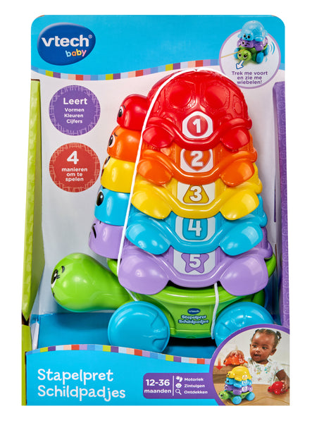 Tijd voor stapelpret! Stapel de schildpadjes op de grote schildpad, trek de schildpad voort en zie wat er gebeurt! Stapel de schildpadjes van klein naar groot om ze te laten verdwijnen onder de grootste. De vormgeving prikkelt de fantasie van kleintjes en bevordert de ontwikkeling van de motoriek. Gemaakt met gerecycled plastic.