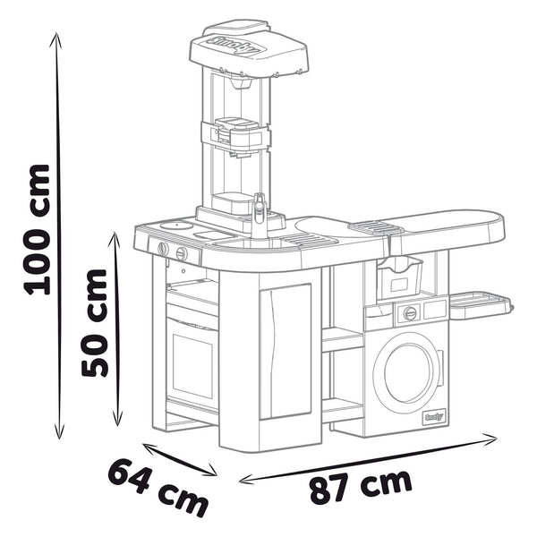 De Tefal clean kitchen is een 2-in-1 product dat combineert imitatie koken en schoonmaken door middel van 2 speelruimtes. De keuken heeft alle attributen van een echte: spoelbak, kraan, oven, koelkast, afzuigkap, koffiezetapparaat, frisdrankautomaat, kookplaat met geluidsfuncties. De schoonmaakruimte is voorzien van een wasmachine met lade met 2 compartimenten, een deur die open kan en een cric crac-functie evenals een droogrek, een wasmand en een strijkplank. 36 accessoires zijn inbegrepen, waaronder: 1 koekenpan, 1 BBQ-cluster, 1 steelpan, 2 kopjes, 2 glazen, 2 borden, 2 messen, 2 vorken, 2 lepels, 3 koffiecapsules, 1 cric crac zout- en peperstrooier, dummyboxen, 1 bezem, 1 schop, 2 hangers, 4 wasknijpers en 1 strijkijzer met mechanische functies... Vanaf 3 jaar.