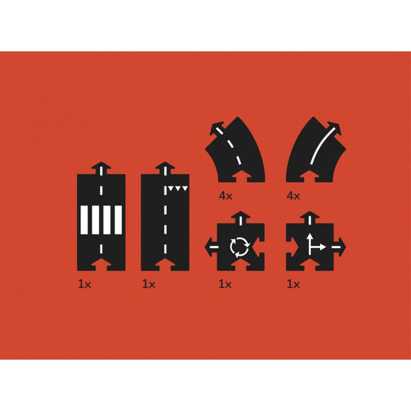 De Ringroad van het merk Way to Play is onze kleinste set met twaalf baandelen om een kleine weg van bijna 170 cm lengte aan te leggen. Elk baandeel is aan beide zijden bedrukt met verschillende wegmarkeringen om veel variatie te bieden. De vorm van de onderdelen is recht, gebogen en gekruist, zodat u een kleine weg- of stadse configuratie kunt maken.